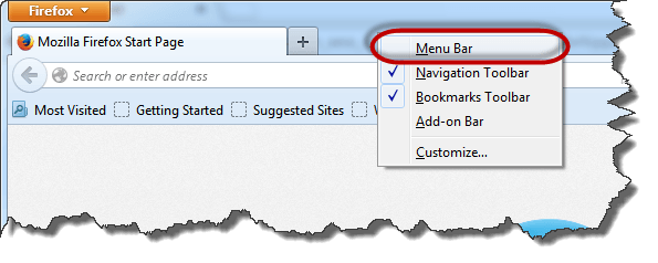 - Enable the menu bar in Firefox if it is not shown