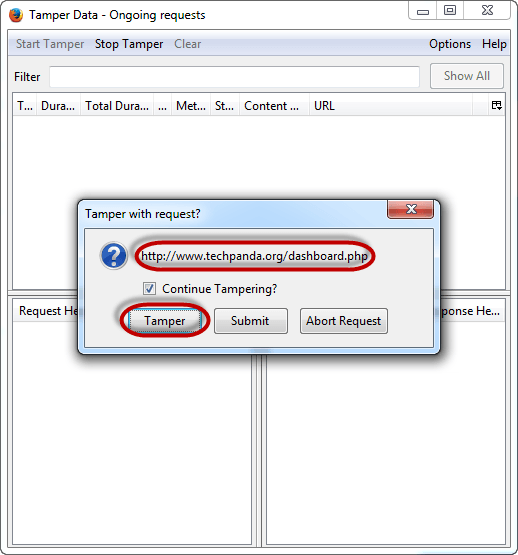 - You will get the following pop up from Tamper Data