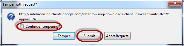 - The pop-up window has three (3) options. The Tamper option allows you to modify the HTTP header information before it is submitted to the server.