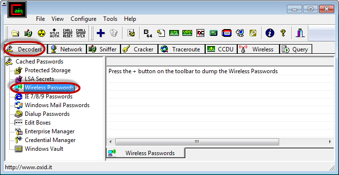 - Ensure that the Decoders tab is selected then click on Wireless Passwords from the navigation menu on the left-hand side