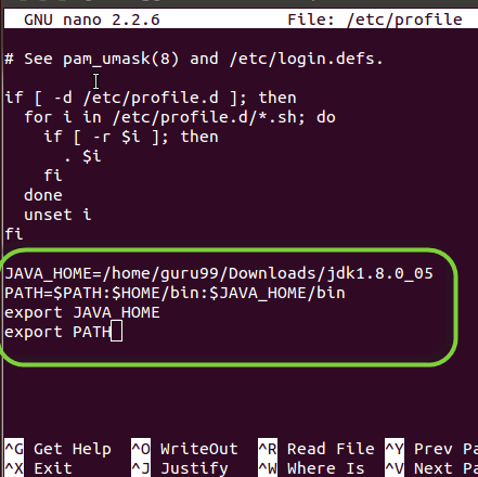 JAVA_HOME=<Directory where JAVA has been extracted>/jdk1.8.0 PATH=$PATH:$HOME/bin:$JAVA_HOME/bin export JAVA_HOME export PATH