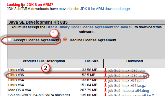 Step 3) Download latest Java (a zip file e.g., jdk-8-linux-x64.tar.gz) from Oracle site-