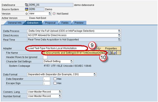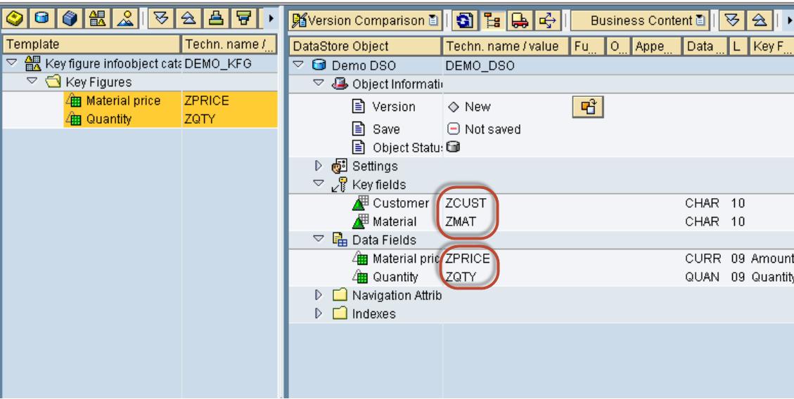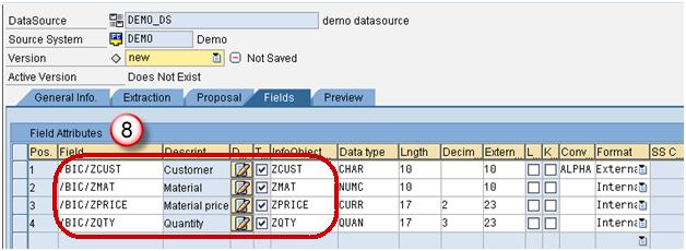 Scenario: Load data to the DSO named “DEMO_DSO”. The DSO has the following fields.