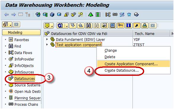 Step 1) Go to transaction code RSA1 to go to the Data Warehouse Workbench. Click the OK button....