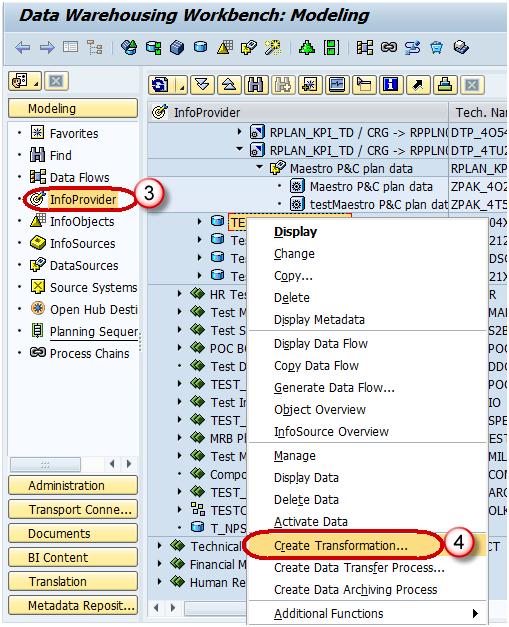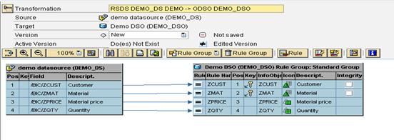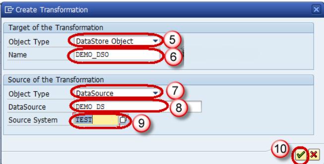 Step 4) Create transformation between Data Source(Source) and DSO(Target).