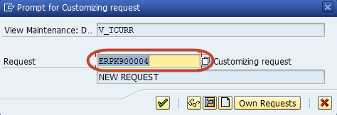 Step 6) In the next screen, Enter the Customizing Request Number, To add the New Exchange Rate .