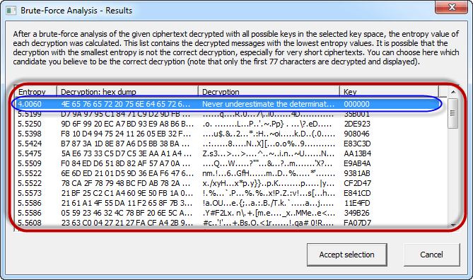 - Note: a lower Entropy number means it is the most likely correct result. It is possible a higher than the lowest found Entropy value could be the correct result.