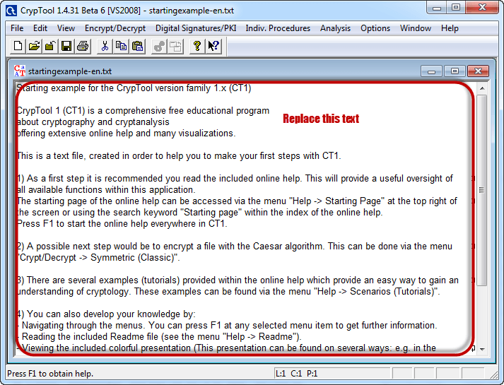 We will use CrypTool 1 as our cryptology tool. CrypTool 1 is an open source educational tool for crypto logical studies. You can download it from https://www.cryptool.org/en/ct1-downloads