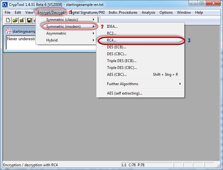 - Point to Symmetric Encryption (modern) then select RC4 as shown above