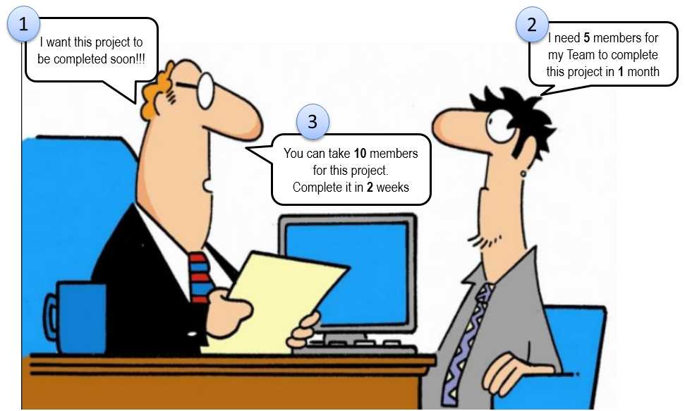 In the Test Estimation phase, you estimated that the gtupapers Bank project will be completed in one month. Say you need 5 members to do this project in one month. But your boss thinks differently.
