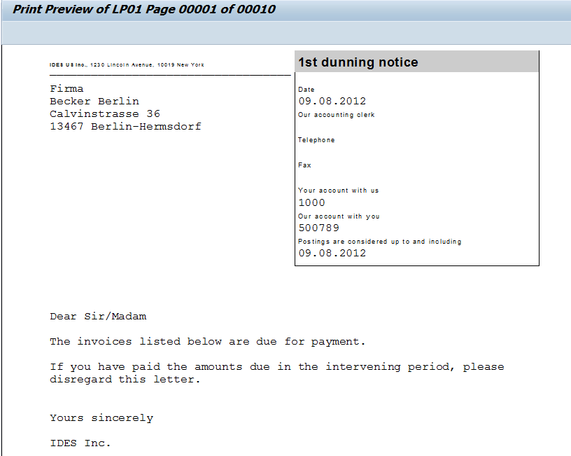 It is the process of Correspondence with the Customer/Vendor about pending bills ( in sap as we call it open items). In SAP we can schedule the Dunning Process and maintain different Dunning Levels for Dunning run.The Dunning process involves the following steps: