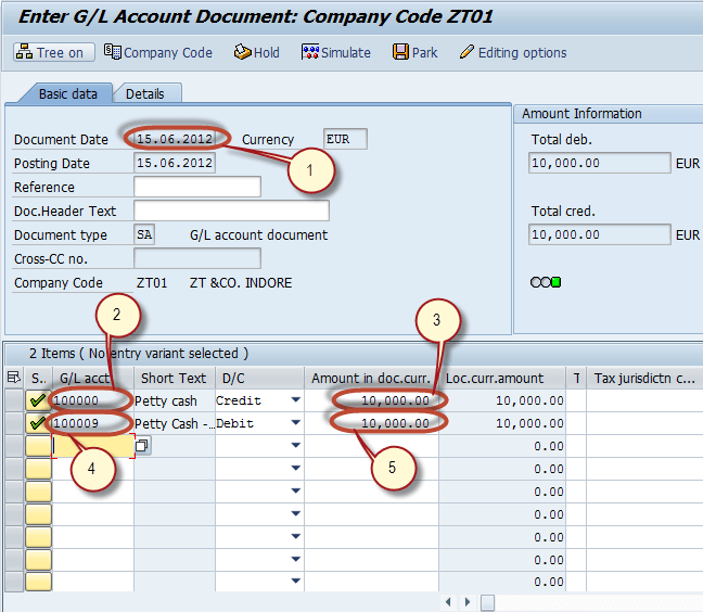 For example ,an Accounting clerk has authority to post documents to a maximum amount $5000. .While feeding document he finds that the document amount is $10000 for which he does not have the authority .