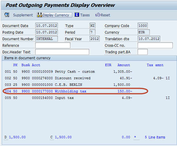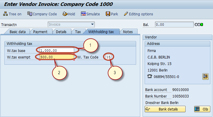 Step 5) In the next screen, we can check the Withholding Tax is also Credited as per the base amount entered in the Invoice.