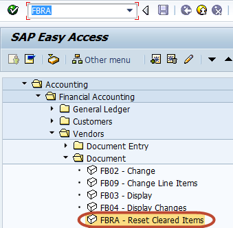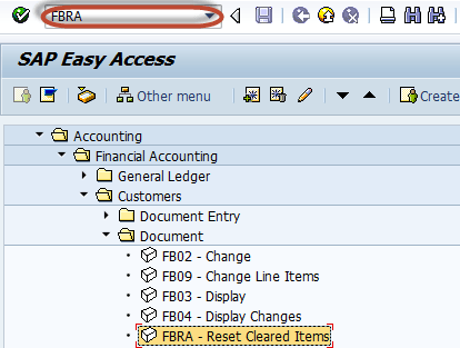 Step 1) Enter Transaction Code FBRA in the SAP Command Field