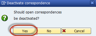 Step 4) Confirm the modal dialog box for the Deactivation of open correspondence