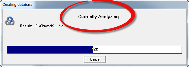 Immediately after affirming availability of disk space, HP Analysis will come to action and you will see a “currently analyzing” window, as shown below: