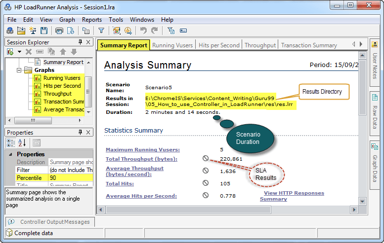 You can also see complete information about your scenario within Analysis session. In the Summary Report tab, you can see the duration of the scenario which was run to get these results.