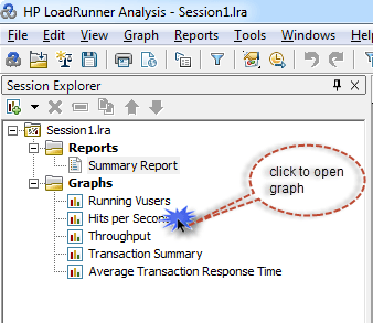 HP Analysis will load most important graphs at the time of Analysis. You can click on any graph name from the Session Explorer to view details against available graph.