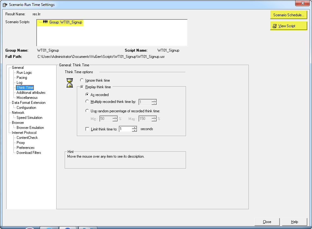 HP Analysis contains every bit of information about your scenario, including Run time Settings. As you’re aware by now that Run Time Settings have significant impact on performance, you can view the settings from within Analysis which were used to run the scenario.
