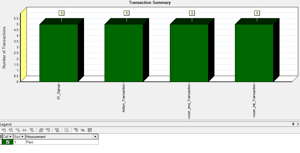 This graph displays the number of transactions that passed, failed, stopped, or ended with errors. This is how it looks like: