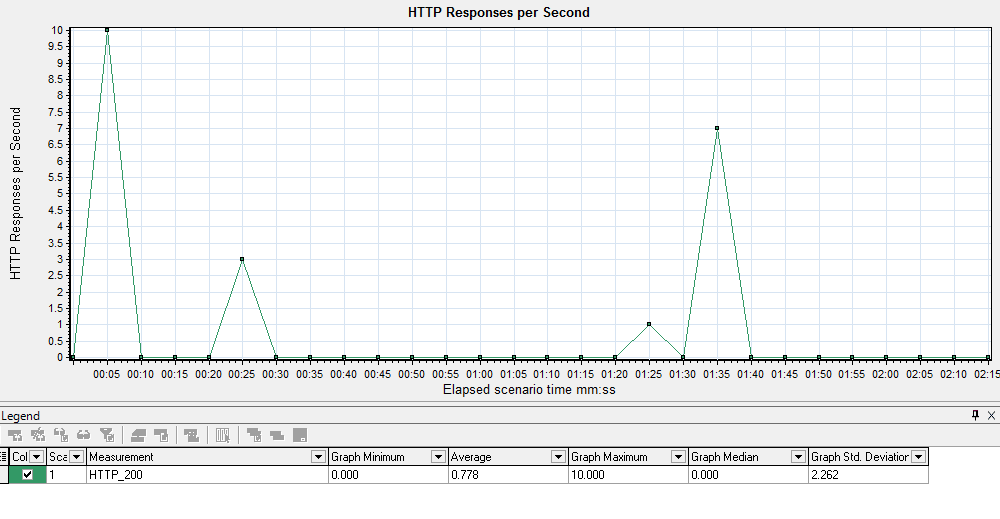 This graph displays the number of the different HTTP status codes returned from the Web server during each second of the load test. This is how it looks like: