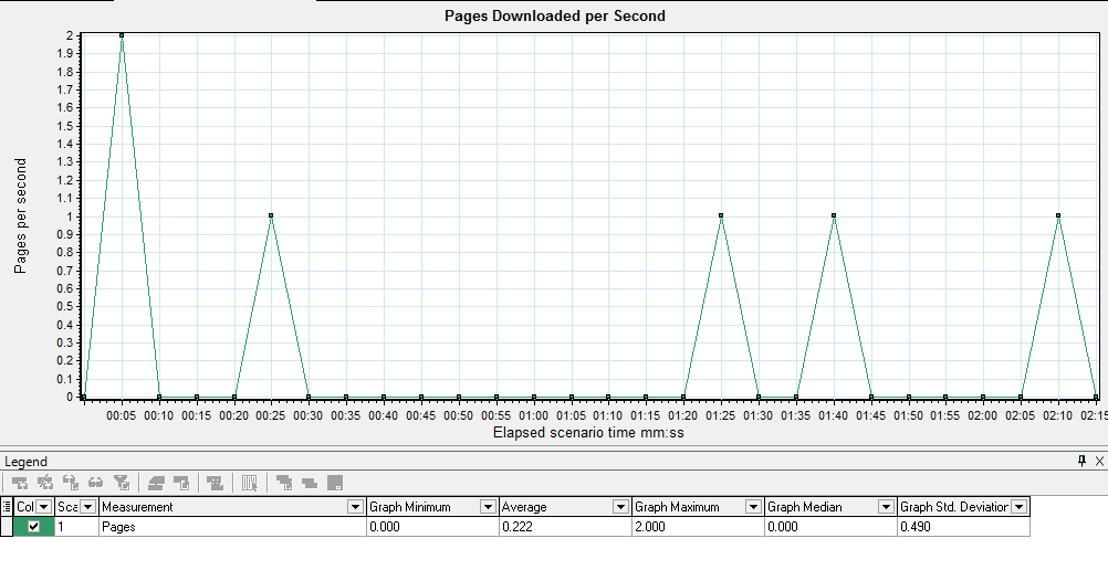 This graph displays the number of pages received from the Web server during the load test. This is how it looks like: