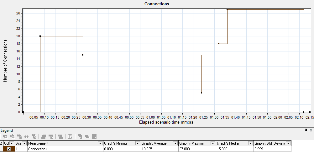 This graph Indicates when VUsers were released at rendezvous points and how many VUsers were released at each point. This is how it looks like: