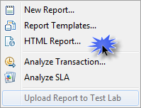 HP Analysis provides a feature to export all data into a well formatted HTML or doc format report. To export, click on the Report menu and select HTML Report. Have a look at the menu below:
