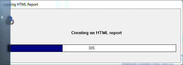 As soon as you click the Save button, HP Analysis will start exporting results and preparing a report in HTML format. A splash screen will appear for a short period, depending upon the size of report you’re exporting: