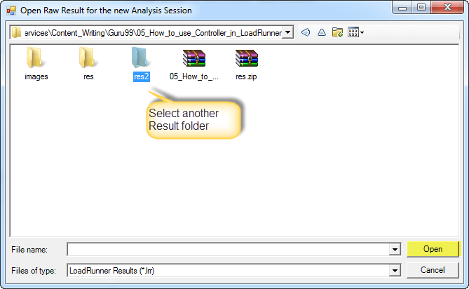 Click on the File Menu or use Ctrl + N to open create analysis session. This will open a dialogue box to help you locate the lrr file. The file extension, LRR stands for LoadRunner Results.