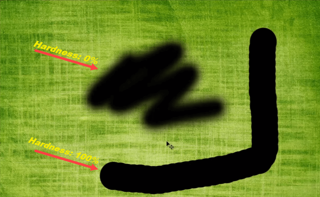 And if I set hardness on 100, then it will gona paint very hard and sharp edges.