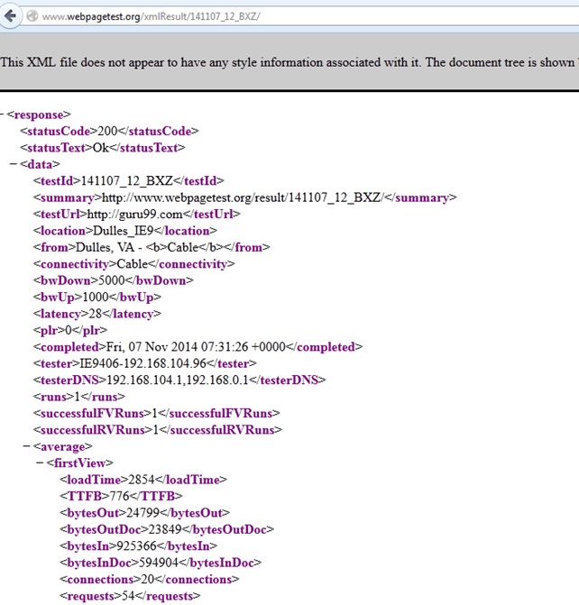 $weburl = "http://www.webpagetest.org/xmlResult/$test_id/";