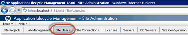 Step 1) In order access HP ALM , a user profile needs to be created. In order to create users, site admin has to click on 'Site users' Tab.