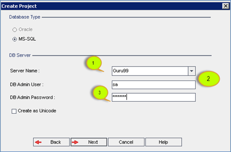 Step 4) Select the appropriate Database type and enter the following. In this case, we have selected 'MS-SQL' as we had installed Hp-ALM with MS-SQL as backend. If you had installed ALM with Oracle as your database server, please select 'oracle'.