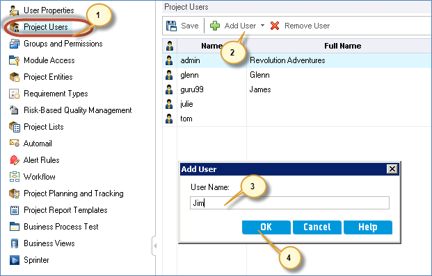 HP ALM Administration: Create Domain, Project & User