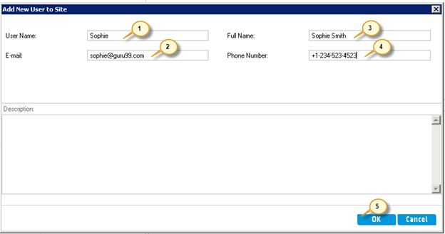 Step 6) Upon Clicking 'Add New User to Site' From 'Add User', the following dialog is displayed.