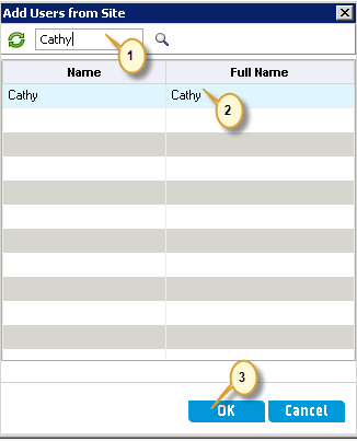 Step 3) Let us add an userbasedon Name. Ensure that this user is already existing in ALM Admin database(User created using Site Administration module)