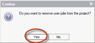 Step 12) Upon Clicking 'Yes' the user is removed from the project users list.