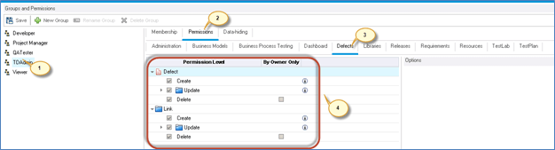 Step 6) The user group is created as shown below. You can also notice that we can rename/Delete the group because it is created by us. Predefined Groups in ALM cannot be edited or deleted.