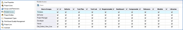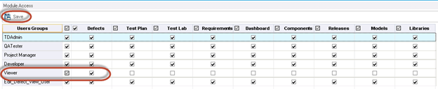Step 2) For demo purpose, let us remove all module access to VIEW user type except defects module.