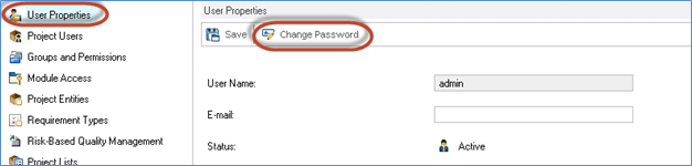 Note: Only the current logged in user password can be changed even if the user is of type 'Project Admin'.