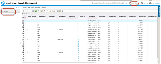 Step 3) Now let us login using one of the 'View' User Id's to check if the changes have been applied correctly. From the below snapshot it is very evident that the settings has been applied as per our inputs as it displays only 'Defects' Module for the view user 'Jim'.