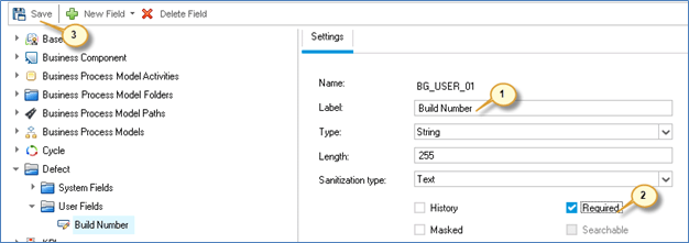 Step 4) Now we can witness the changes made in the defects module. Navigate to defects module and user will be able to see the newly created field 'Build Number' which will be part of 'New Defects' Module.