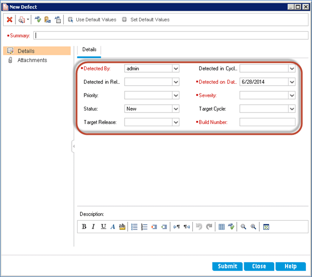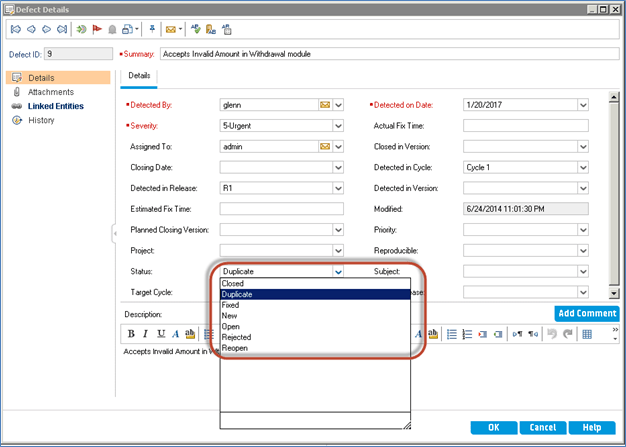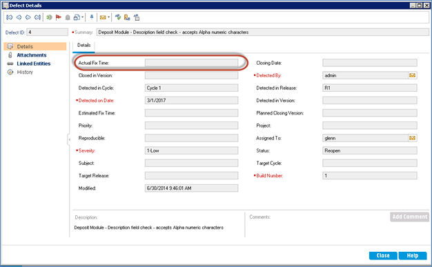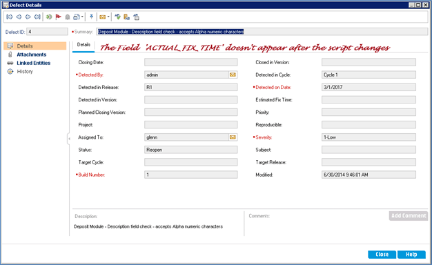 As per the above script the defect Details dialog is displayed to the user as shown below.