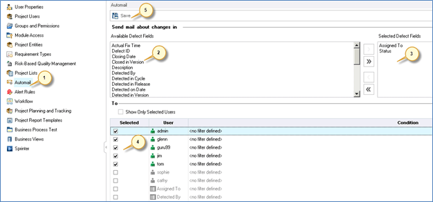 This module enables project Admins to set up automatic mail notification rules to notify users via email about the changes made to specified defects. This automail feature is available only to defects module.