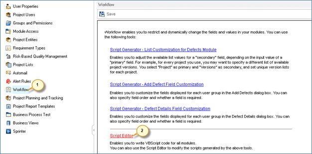 The script editor functionality helps users to write scripts to customize dialog boxes of various modules and also control the actions that users can perform within each module.