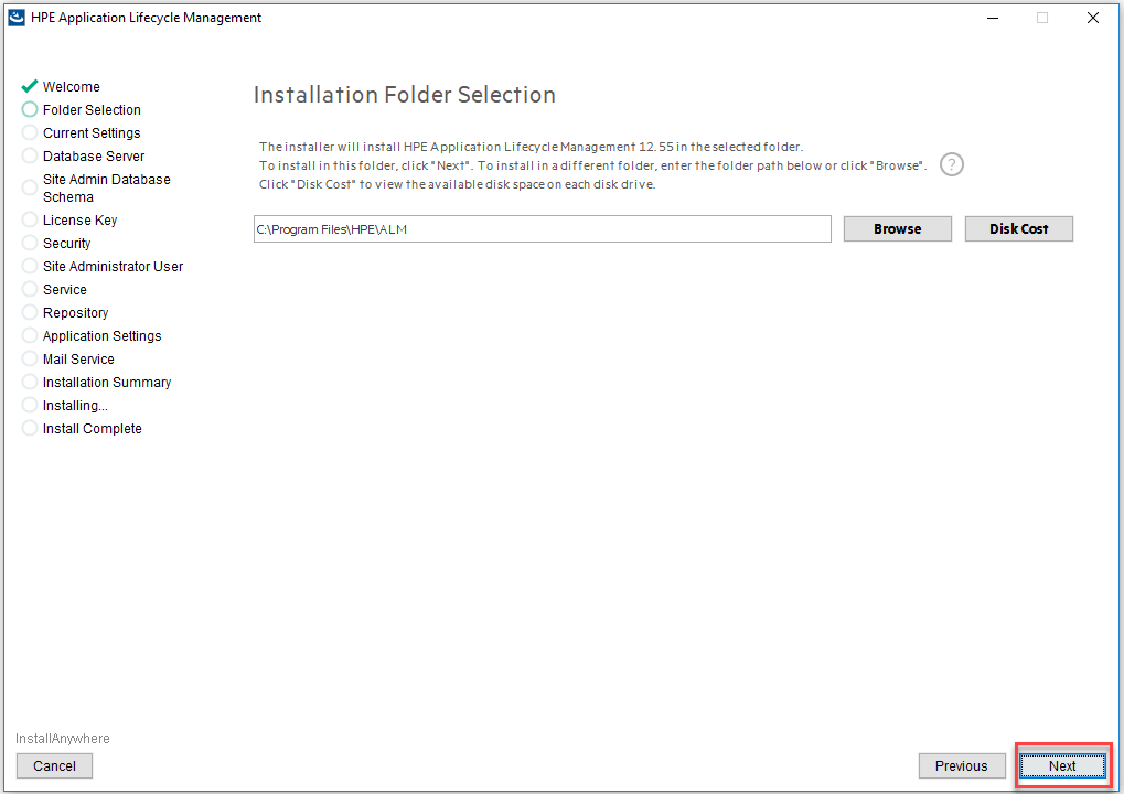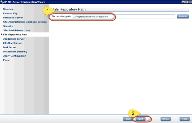 Step 6) Select the File Repository Path where all the ALM Data would be stored.