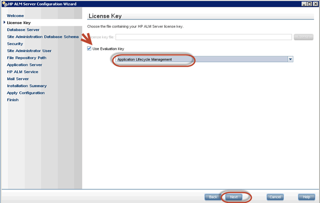 Step 1) Use 'Evaluation Key' and select 'Application Lifecycle Management' and click 'NEXT'.