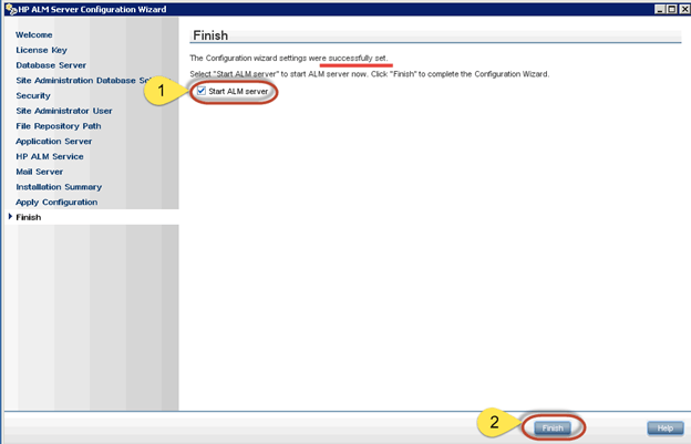 Step 12) Upon applying the configuration if successful, status message would be shown appropriately. Click 'Finish' and ALM service will be started if 'Start ALM Server' has been checked.