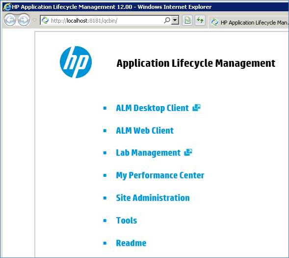 Step 13) Now we can launch Quality Center by using the URL : http://localhost:8181/qcbin/. The ALM 12.0 would be launched as shown below.